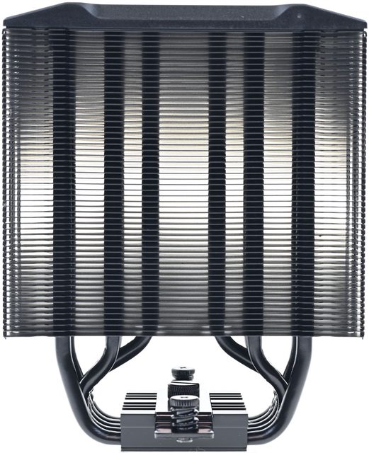 AM5/AM4平台,高度158mm單塔散熱器的外觀採黑化處理,全銅處理器接觸面,5支直徑6mm