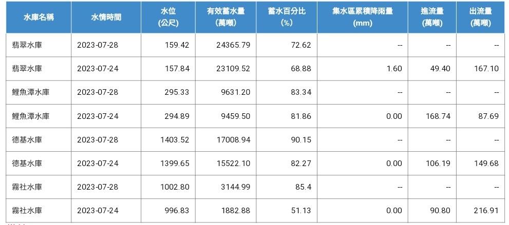 → jerrylin : 這次補水最多的是中部三個水庫 南部補一點點而已 07/28 11:20