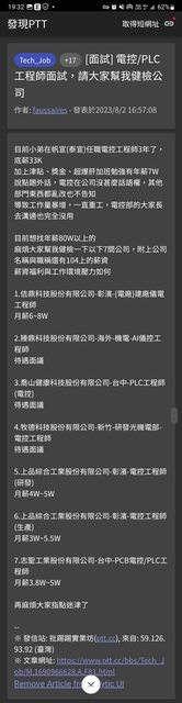 ※ 文章網址: https://www.ptt-club.com.tw/Tech_Job/M.1691064467.A.2D8