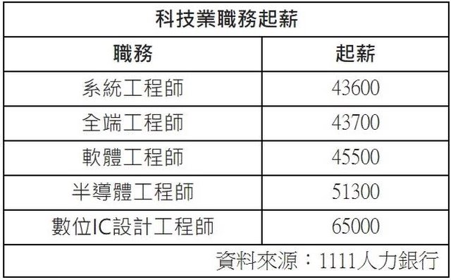: 科技業職務起薪。(圖/1111人力銀行提供)