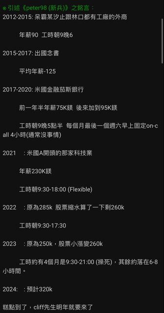 推 peteryen : 怎樣叫準時下班?我年薪140-160之間,10點前到公司 10/25 16:34