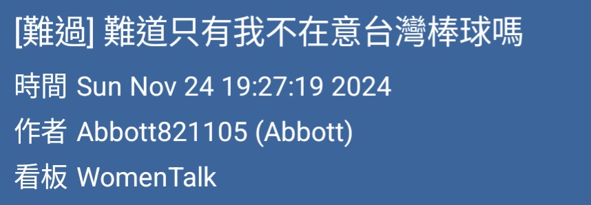 laaa0912 : 啊剛剛說不在意台灣棒球?蹭?223.136.186.215 11/25 00:27