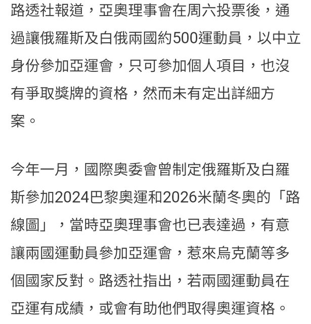 標題Re: [問題] 俄羅斯 白俄羅斯允許參加杭州亞運