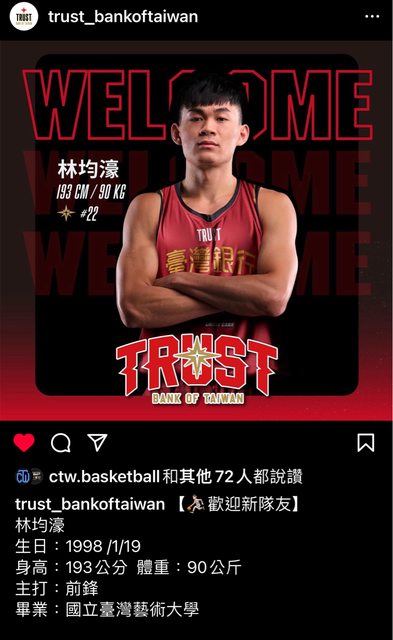 : 台銀正式官宣林均濠加盟!