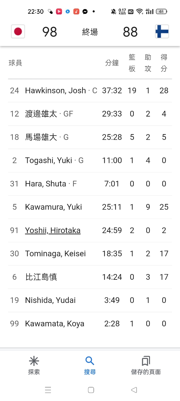 推 Birdy123516 : 上半場靠比江島慎 下半場靠雙星 直接把芬蘭送回家 08/27 22:27