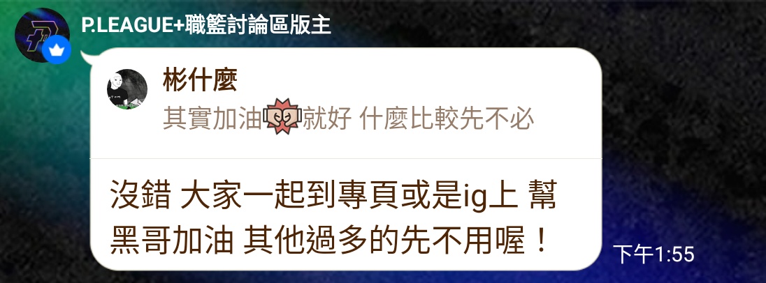推 yuchiwang : P群:大家可以到黑哥ig或臉書東超那篇文 為黑哥加 09/05 15:20