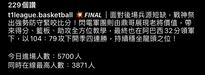 → WetBro : 線上人數比進場人數少 戰神粉進場率好高 11/25 19:20