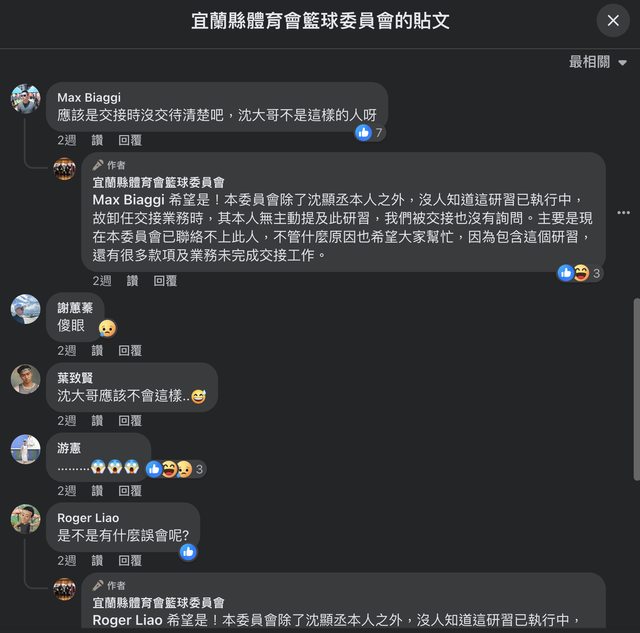 明人士,冒中華籃協名義發信取消活動,透過現任主委聯繫,沈姓前主委訊息不讀不回,