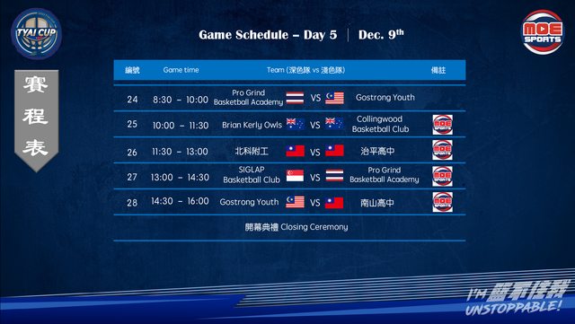 標題[LIVE] 北科附工盃新南向國際籃球邀請賽12/5~9
