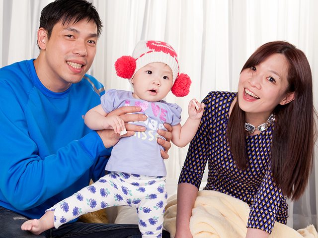 長相清秀、白白嫩嫩,個性活潑開朗,面對鏡頭一點都不怕生,夫妻倆看著女兒