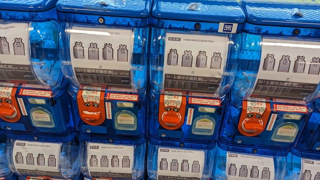 換了幾個50元銅板走到機台前才發現轉蛋區的灰色球衣鑰匙圈被全部轉完了