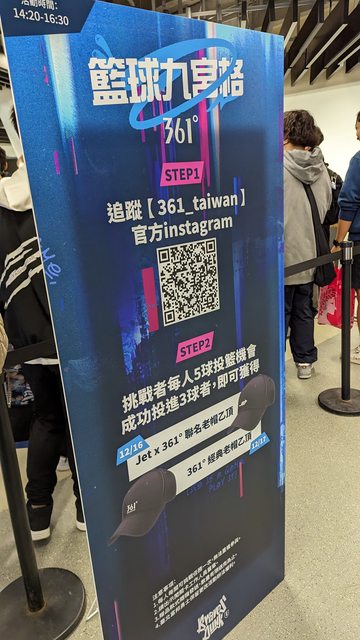 一堆人都在排籃球九宮格,5次機會只要進3球就可以拿一頂還不錯看的老帽