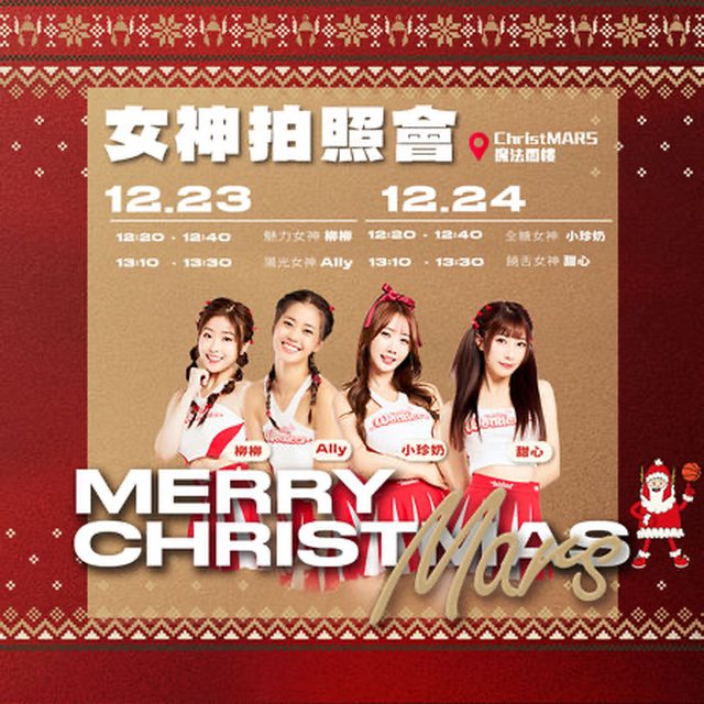 「ChristMARS 魔法閣樓」,除有聖誕老人現場合影外,12月23日Taishin Wonders柳柳、Al