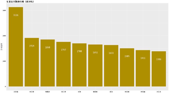 我們可以發現,儘管放寬標準,第二張圖還是有球員重複出現。剛剛前十名的陳順詳、洪