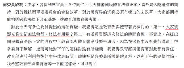 體育法,找106年修國民體育法的立法歷程,或許可以從中找尋發言順眼的立委去訴說,