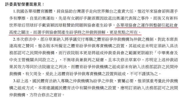 3.許智傑,有注意到協會跟選手爭端的問題,對於體育仲裁的看法內行,有些點現在研討