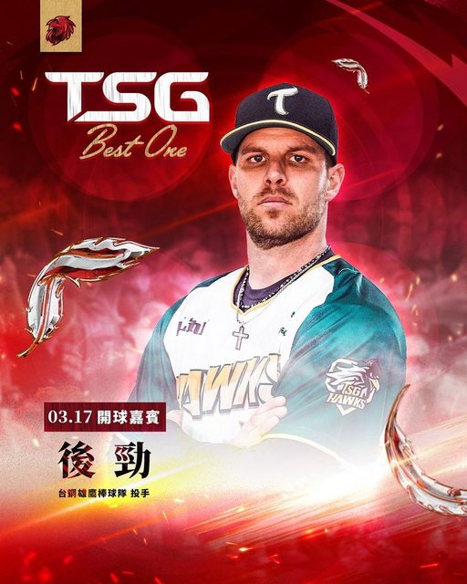 本週末「BEST ONE」主題週,在3/17的賽事中則邀請台鋼雄鷹洋將投手後勁(Bradin Hagen
