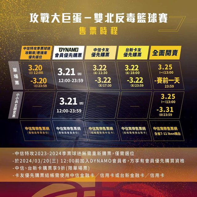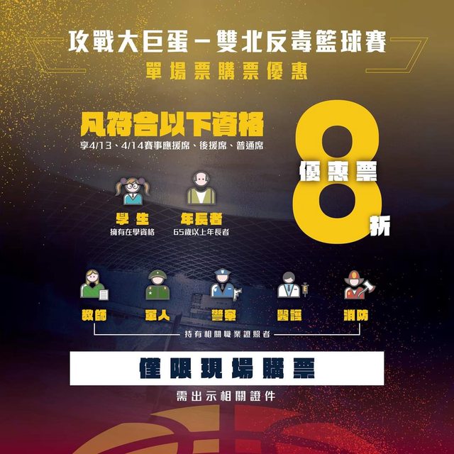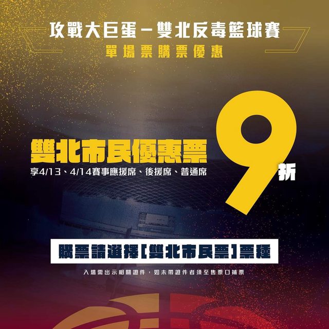 標題[情報] 攻戰大巨蛋-雙北反毒籃球賽 售票資訊