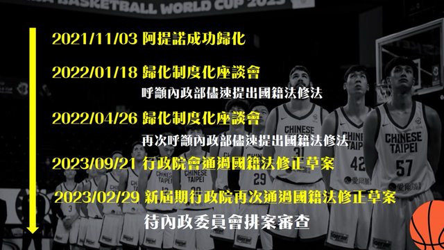 莊瑞雄補充,當初阿提諾歸化成功後,他便呼籲完整籃球歸化政策不能只是被動等待國籍