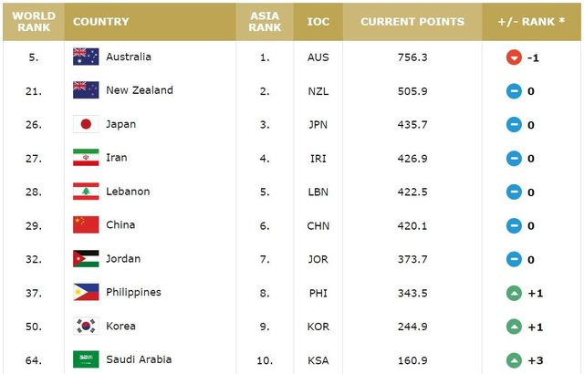 : 島上升4名,爬升至72名,而日本依舊是亞洲第一(不包含大洋洲),目前排名第26,優於
