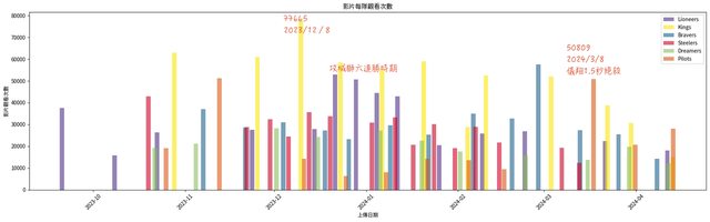 - 國王影片觀看數一直很多,2023/12/8這支也是六隊目前最多觀看次數77,665