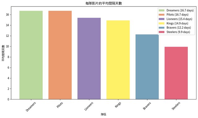 級,就不納入討論了。數據來源為 YouTube 每隊紀錄影片的播放清單,這邊友善提醒一