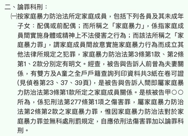 → joejoe14758 : 違反了"家庭暴力罪" 04/18 14:50