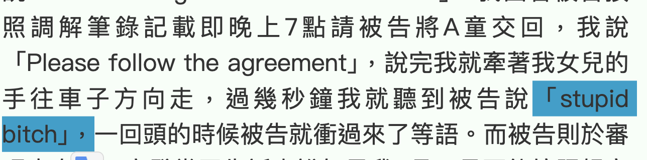 → neverli : 「聽到被告說stupid bitch」 04/18 17:21