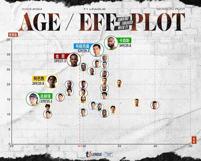 → joanayulove : *本圖表取聯盟效率值前30名之球員進行年齡比較 04/18 17:29