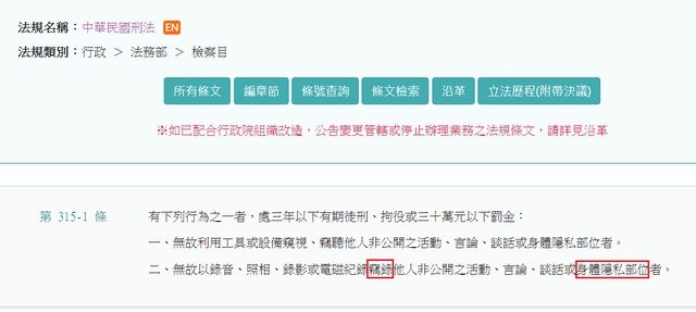 所以重點在刑法第315條之1第2款無故竊錄他人身體隱私部位。