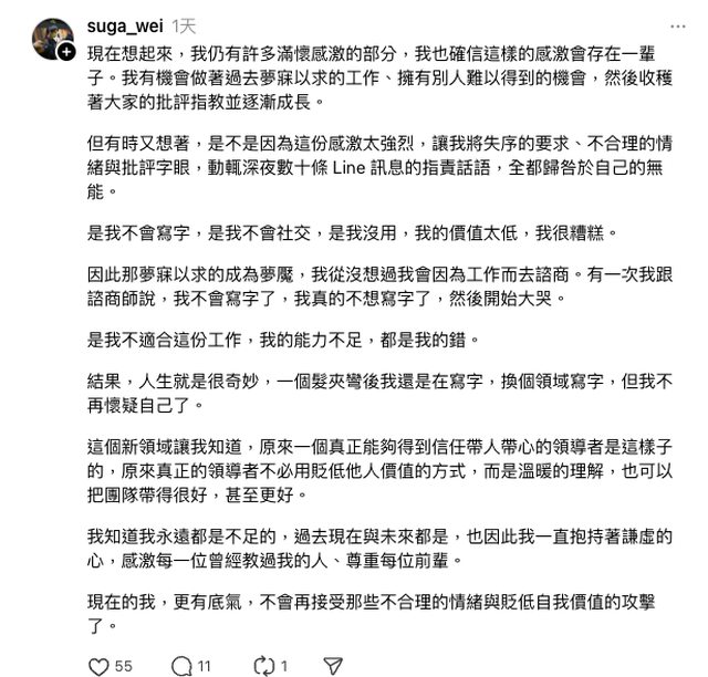 → bsp0919 : Wendy 深夜被他數十條訊息謾罵 罵到她去看諮商? 04/28 00:03