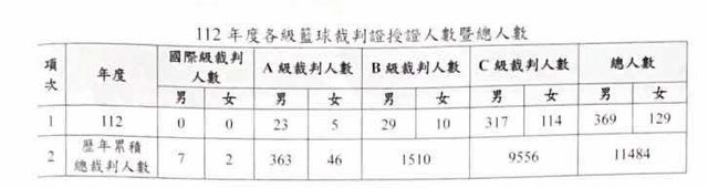 二、目前籃球裁判人數有多少