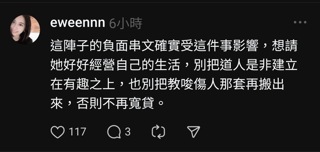 → j112233446 : 件事 感覺是私下被騷擾到受不了了 06/04 11:09
