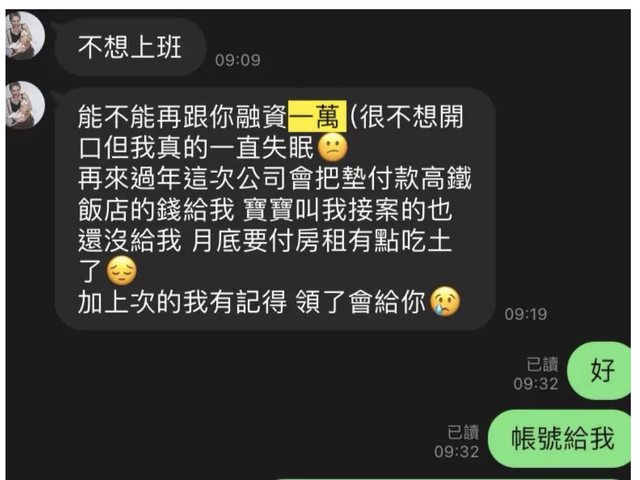 推 jeangodard : 從高中跟到職業的女朋友不要 去找三萬都要借的 06/29 16:38