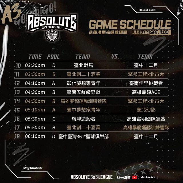 LIVE 3rd ROUND | DAY1 | ABSOLUTE 3x3 League | 花蓮港觀光遊憩碼頭 網路直播