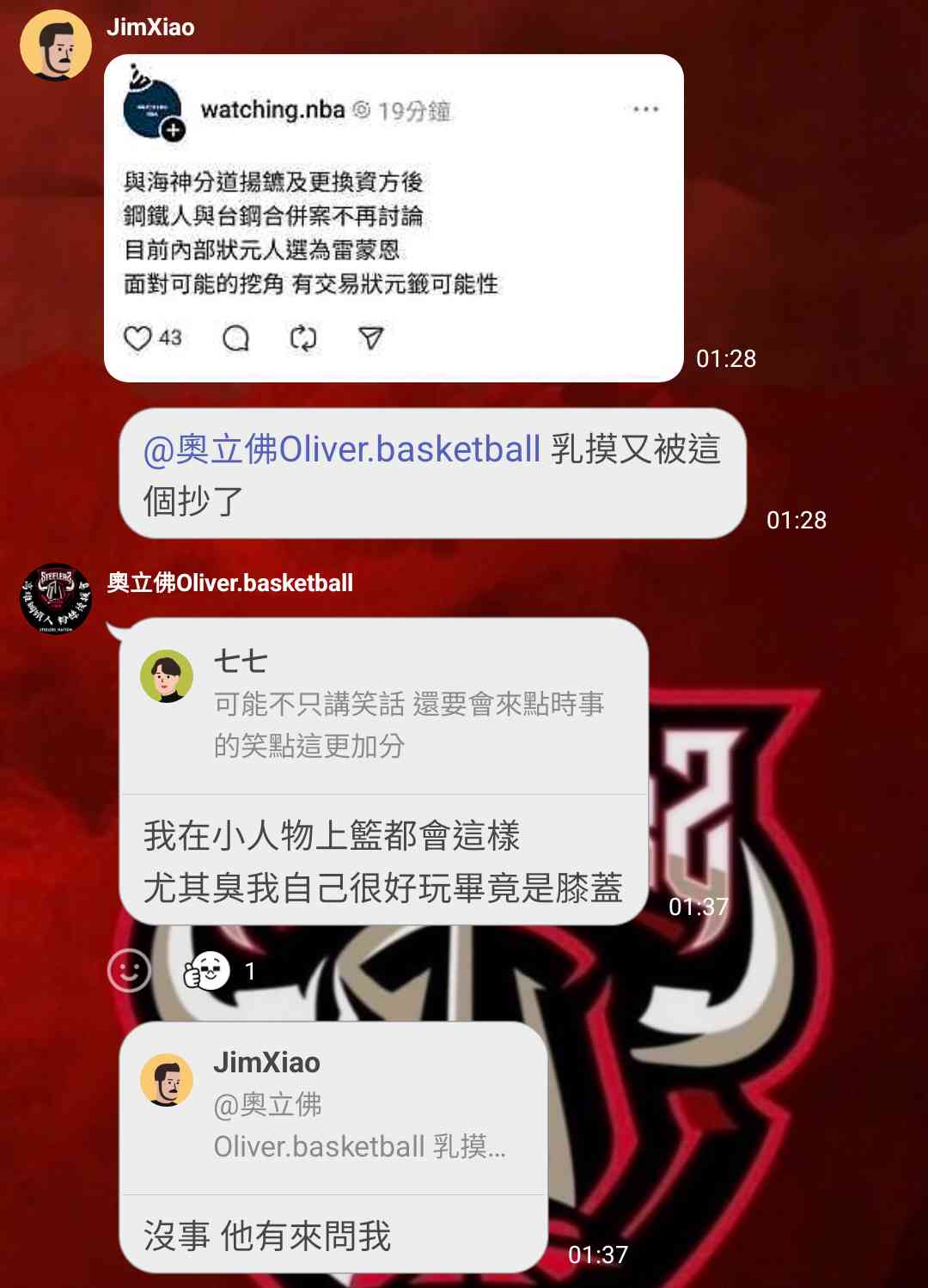 Notif520 : 鋼現在缺球員 幫富邦選八爺然後做交易至少能交易到 07/11 07:50