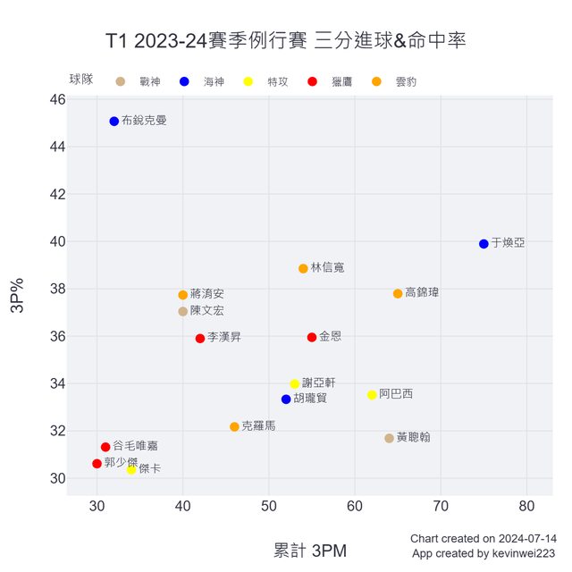 只是像球員身份、位置、頭貼等額外資料還沒時間撈,所以少了一些選項功能,之後有空再補上。 因為現在有了新聯盟,球隊跟球員跳來跳去,我是打算未來要把所有數據整合,讓各個聯盟球員的數據都能在同一頁面查詢比較跟作圖,但不保證有時間做就是了... -- ※ 發信站: 批踢踢實業坊(www.ptt-club.com.tw), 來自: 49.216.18.115 (臺灣) ※ 文章網址: https://www.ptt-club.com.tw/basketballTW/M.1720951167.A.87E
