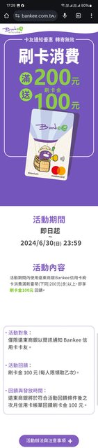 標題[情報] (分眾) 遠銀bankee 刷2百送1百
