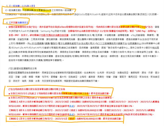 交易日2023/3/1 (含)起之〔特約商店分期付款交易及單筆消費分期0利率之交易〕將
