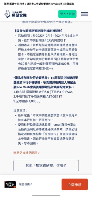 ruby02162000: 1/2申請、2/5核卡、過年前收到卡並刷滿5000,2/26剛02/26 16:32