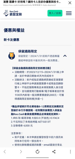 去年12月底在袋鼠金融網站, 申請辦了匯豐匯鑽卡, 並於2024/1/23收到核卡通過信, 有申請電子帳單 核卡後於30天內也有刷超過5000。 原本在查要如何領首刷禮時, 進去看到袋鼠金融網站有更新, 告知首刷禮活動提前於2024/1/25結束??? 請問這樣還領的到首刷禮嗎..? 先前網站訊息 http://i.imgur.com/LJUPTHC.jpg