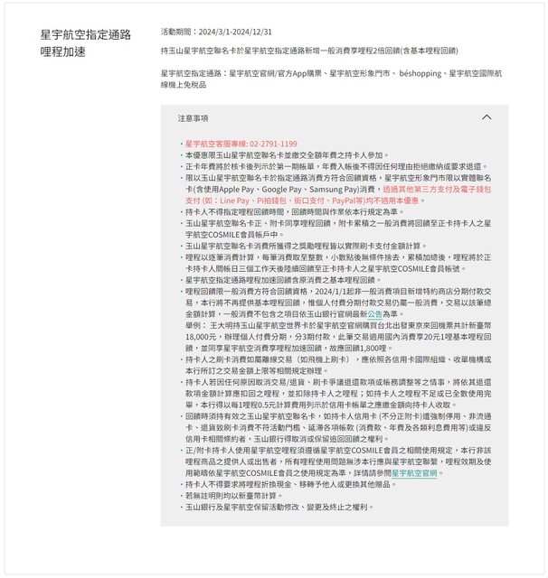 回饋時須持有效之玉山星宇航空聯名卡,