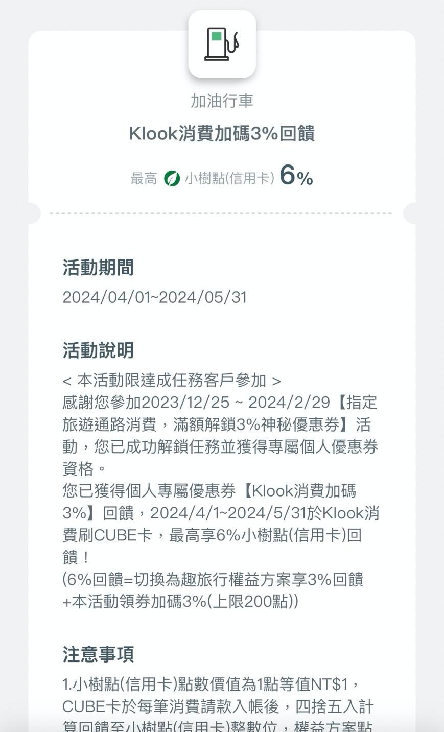 mclll : 拿到klook的 發現3%加碼能再疊加原本的權益 04/03 14:28