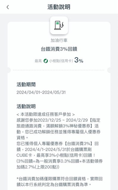 打開cube app要領這個月的加碼回饋券 結果發現莫名多了一張台鐵的3%回饋 https://i.imgur.com/qb9NSz1.jpg