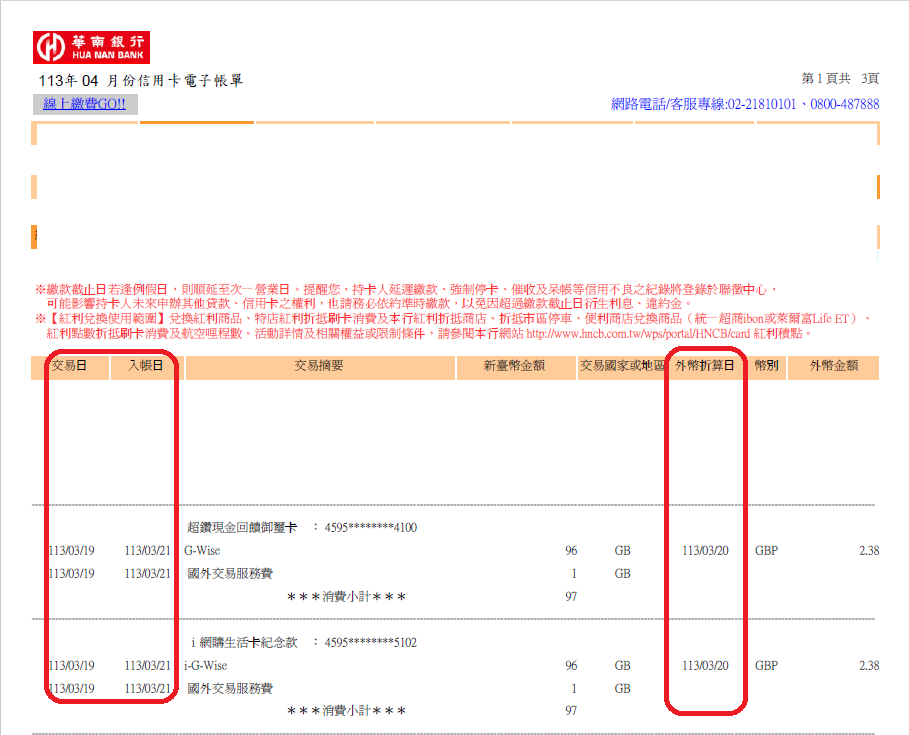 BabyWolf : 另外 JCB要看三個日期 消費日 折算日 入帳日 後兩者04/15 02:24