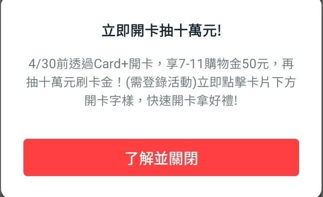 推 fromnowon : 開卡+1,完成就用APP關所有小費,等要用再 05/01 01:58