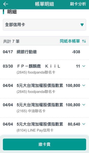 其實我還刷了其他四家,用定期定額扣款的:)