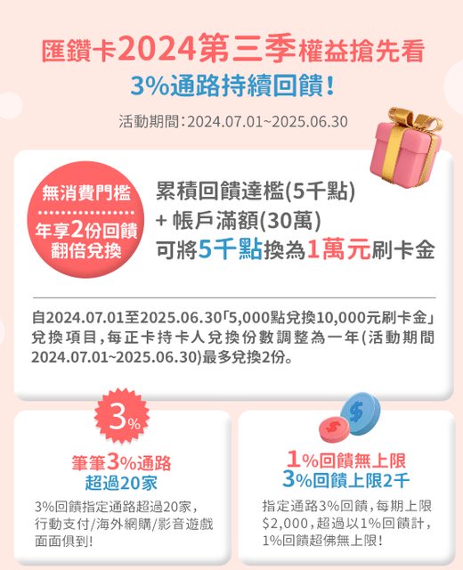 : 如題,繼門檻提高之後 (平均存款10萬變30萬)、每帳單週期3%上限2000之後