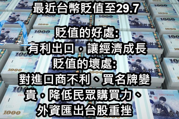 推 zxc36mn7: 臺幣貶值會被川普扁更慘吧,而且國內通膨可能會先炸掉 04/07 14:20