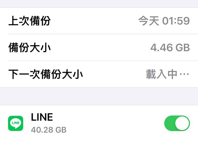 剛看I cloud備份line的備份有40g